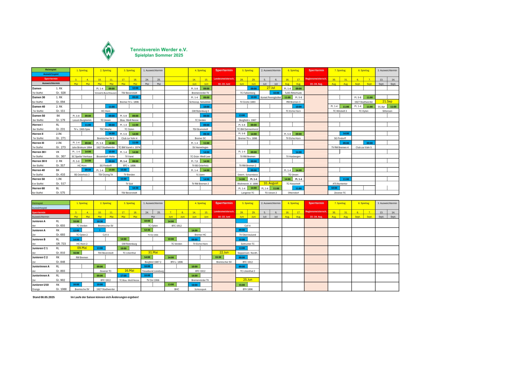 Alle Mannschaften und Ergebnisse des TV Werder im Überblick: